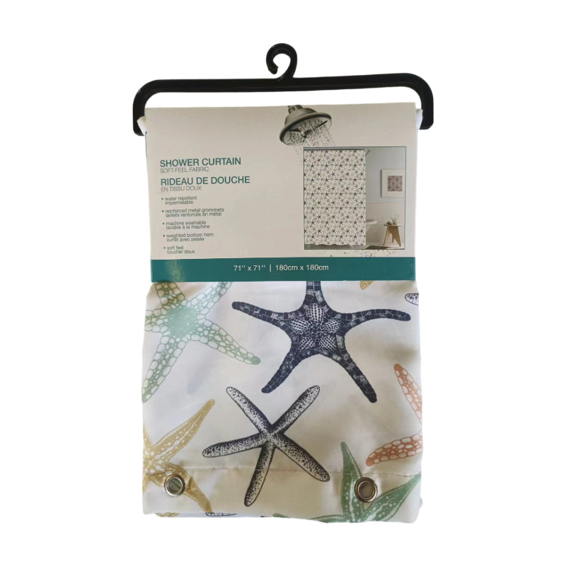 Transfer printed shower curtain, 180*180CM, waterproof, 90g/sqm, with metal grommets and lead weights, no C-hooks